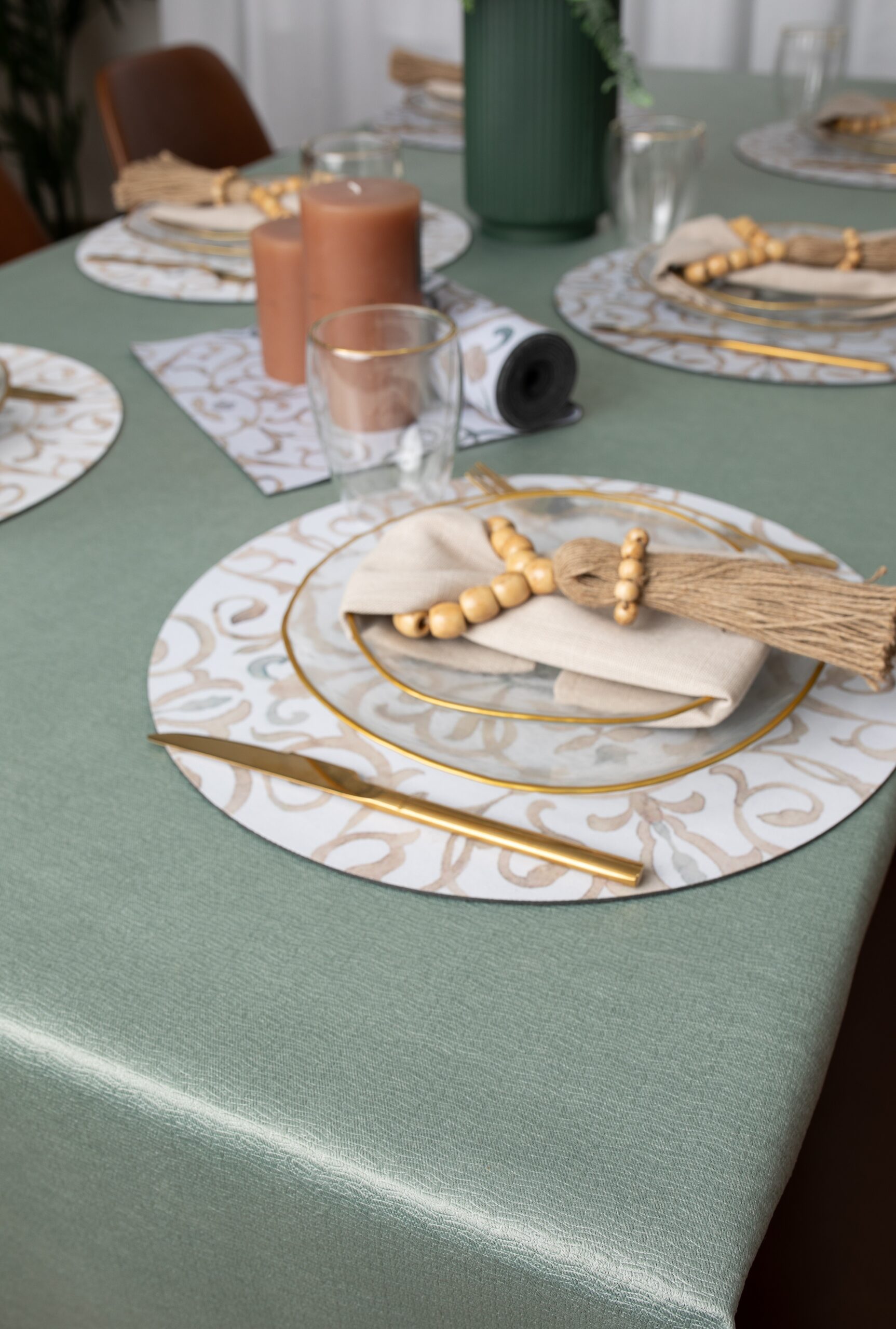 מפת סנטוריני מגיעה בצבע ירוק מרווה מרענן שמקפיץ כל סט כלים.